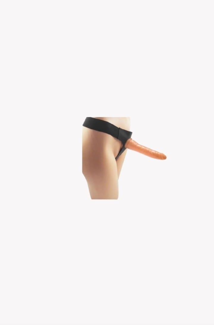 Arnes reforzado de cuero, acompañado de un dildo con ventosa, puede usarse tanto para penetración anal como vaginal. El dildo puede desprenderse del arnés, y el arnés puede usarse con diferentes dildos, de diferentes tamaños.
