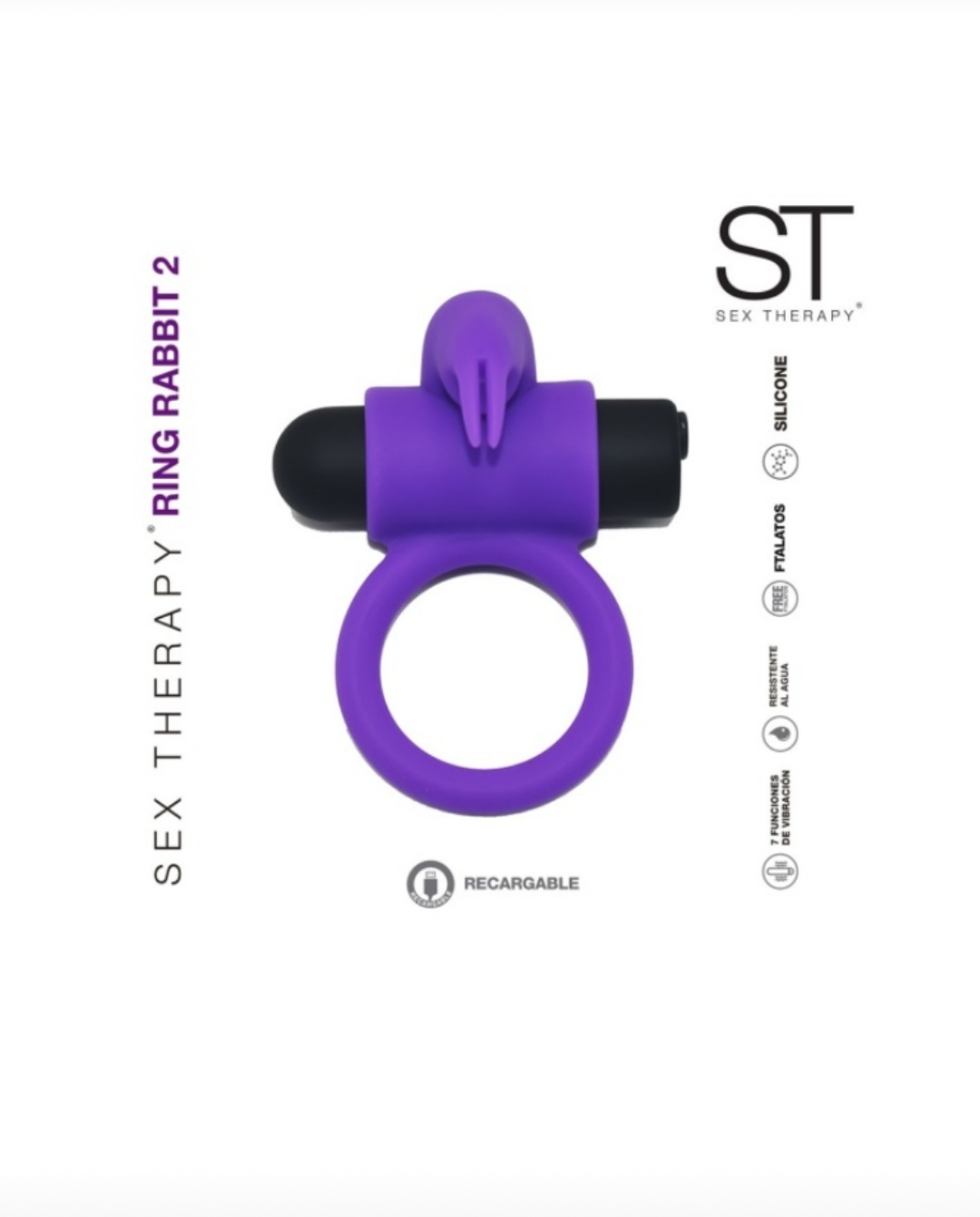 Anillo vibrador con conejito realizado en silicona suave y sedosa de gran calidad.